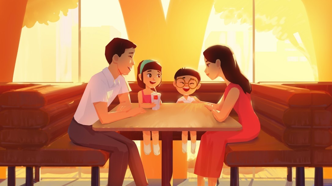ROLE Director TEAM 2 Executive Producers 1 Production Manager 1 Art Director 1 Character Designer 1 Storyboard Artist 1 Background Designer 1 Background Painter 8 Animator & VFX Artists 2 Compositors McDonald’s Singapore partnered with the Ministry of Social and Family Development and Families for Life to launch a family mental wellness campaign focused on supporting children’s emotional well-being. I was tasked to lead Studio Mune to produce a heartfelt animated short film for its launch. The film highlights the vital role parents play during early childhood, particularly when children begin experiencing stress, and was promoted across McDonald’s Singapore’s social media platforms. My role on this project was Director, collaborating closely with Studio Munē to bring the production to life. I led the creative vision from concept to completion, shaping the story, curating visual references and mood boards, and overseeing the entire production process, including storyboarding, character design, concept art, and animation. I worked closely with Andrey Pratama, the art director of Studio Munē, where he skilfully translated my vision into these beautiful styleframes.